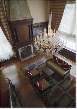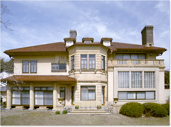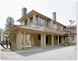 舊乾家住宅は、大規(guī)模な邸宅が建ち並んでいた舊住吉村(現(xiàn)神戸市東灘區(qū)の一部)の山麗部に位置し、乾汽船株式會(huì)社を設(shè)立した乾新治氏の自宅として1936年に建築されました。約1200坪の敷地で、洋風(fēng)を基調(diào)としながら巧みに和洋を折衷し、重厚さと繊細(xì)さを併せ持った建築デザインが特徴的です。玄関ホールは吹き抜けの高い天井を持ち、迫力ある空間に。重厚なゲストルームは、大きな窓から差し込む光が豪華な室內(nèi)裝飾を美しく浮き出させます。ゲストルームの上部にある3階のサンルームでは、階下とは一転して明るく透明感のある現(xiàn)代的なアール?デコのスタイルが取り入れられています。前庭?洋式庭園?和式庭園?茶庭(現(xiàn)存せず)から成る庭園も設(shè)けられ、阪神間の昭和戦前期大邸宅の風(fēng)格を伝える貴重な存在になっている舊乾家住宅。建物全體が神戸市指定有形文化財(cái)、茶庭跡を除いた全ての庭園が神戸市指定名勝に指定されています。