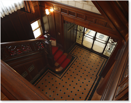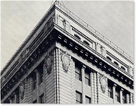 神戸の海岸通りで海に面して建つ舊大阪商船神戸支店は、1922年に建築されたビルです。渡邊節(jié)氏は、このビルを建築するにあたって歐米の建築視察に出掛け、視察先で體験した多様な様式や新素材、新工法などを神戸支店の工事に活かしました。外壁にテラコッタ(素?zé)啢螣啢铮─蚴褂盲贰ⅴ抓楗攻咯`(石膏などを原料にした左官材料)を輸入?國産化。外観は歐米のオフィスビルの伝統(tǒng)様式を採用しており、ルネッサンス風(fēng)オフィスビルの特徴がよく示されています。特に1階ベース部分のルスチカ(切石積み)風(fēng)は荒々しく圧巻です。全體として三層構(gòu)成で、中間部の外壁の柱型はフラットなテラコッタ張りで頂部に楣飾りが付き、その上に軒蛇腹があり最上階を形成。南面の隅角部分は円弧狀の破風(fēng)となり、その中央に渦巻きを持った飾り額が付いています。重厚で迫力のある外観は、港町?神戸のシンボル的存在になっています。