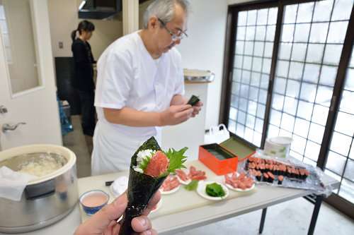 毎月第2土曜日には、「わくわくサタデー」と銘打って地元特産品の試食?販売と演奏などのパフォーマンスを実施。1月は鹿部のたらこを惜しげもなく使った軍艦巻と手巻き壽しが試食できました。