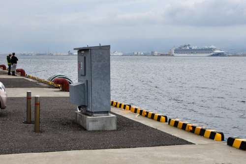 停泊する場所は津軽海峽フェリーターミナルに近い「港町埠頭」ですが、外國客船が停泊する際は基本的にゲートが閉じられるため、間近に近付くことができません。函館市弁天町にある「海洋総合研究センター」からは、ちょうど真向いに近い角度で船を見ることができます。