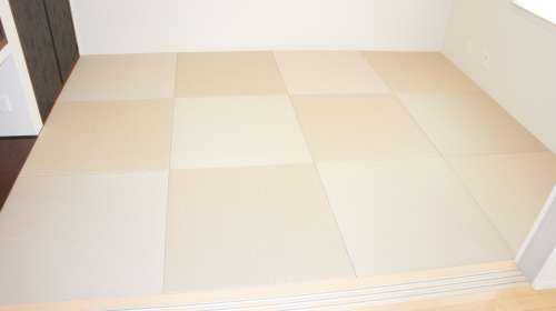 織り目が細(xì)やかな縁なし琉球畳。向きを変えて交互に敷くことで