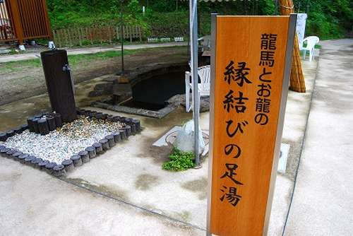 川沿いに細(xì)長く整備された公園には、2つの源泉からなり、ゆったり浸かれる共同風(fēng)呂「塩浸溫泉」と 「縁結(jié)びの足湯」が楽しめます。また、資料館裏手の少し急な山道「龍馬の散歩道」は犬飼の滝まで行けます。龍馬たちもこの坂道をたどって塩浸溫泉に入りにきたといいます。