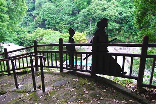 天降川の支流、清冽な流れの石坂川のほとりにある「塩浸溫泉龍馬公園」を訪れてみました。平成22年5月にオープンした龍馬公園は休日ともなると多くの観光客で賑わっています。橋を渡り公園內(nèi)に入ると、木々の緑と水量豊かな川の流れに囲まれて、坂本龍馬とその妻お龍の銅像が靜かにたたずんでいます。
