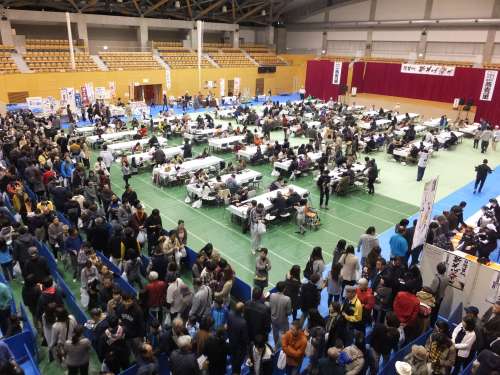 ■新そば祭りの會場である 豬苗代町総合體育館(カメリーナ)には