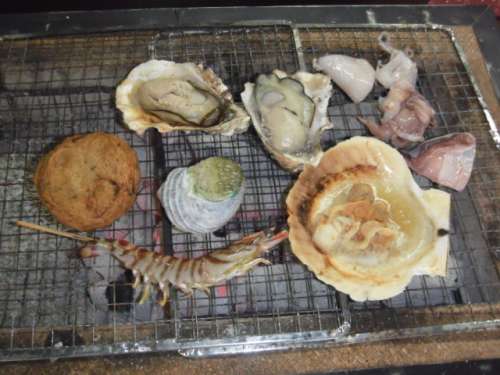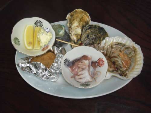 牡蠣、ホタテ、さざえ、車海老、イカ、じゃこ天!