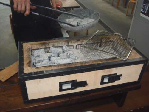 「魚市海鮮炭火焼コース」を注文すると、炭火の準備からして