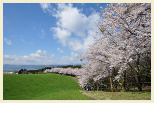 - 雄大な阿蘇のカルデラにかかる雲海を背に、天空の地に咲く桜の丘のようにも見えます。