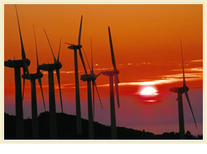 - 佐田岬ののシンボルになっている発電の為のプロペラ風車が美しい夕陽の前に勇壯な姿で連立しています。
