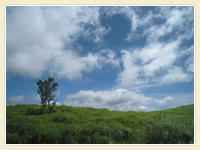 - 青空に淡い雲が出て、少しずつ形を変えながら変化をしているような空模様です。そんな変化の様子を、丘の上から木が寄り添って語らいながら仰ぎ見ているような印象の寫真です。