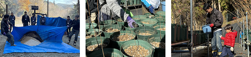 発芽して1~2年経った苗木をさらに大きく生長させるために、新しい苗床に移します。