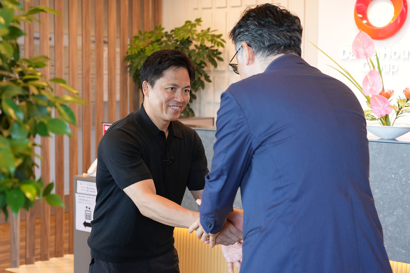 創業70周年アンバサダー?野村 忠宏氏と大和ハウス工業所屬のプロゴルファー?宮里 優作氏がWood Residence MARE 駒沢展示場に集結。異なる競技のトップアスリートたちがセルフマネジメントやキャリア形成について語り合います。