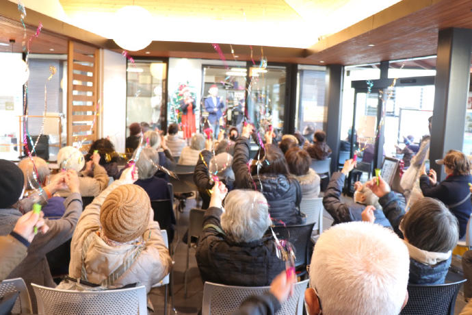 野七里テラスと自治會館を使ったクリスマスコンサートは買い物に來られた方を含め、多世代で大変な賑わいとなりました。