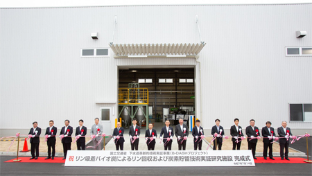 B-DASHプロジェクト実証研究施設が完成 (リン吸著バイオ炭によるリン回収および炭素貯留技術実証研究)