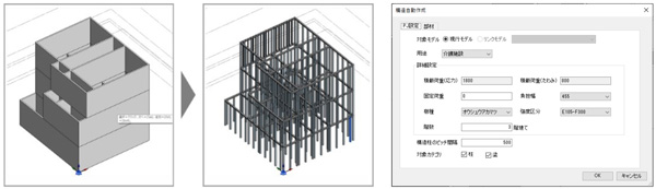 【企畫モデル(床?壁のみ)から構造モデルを自動生成】(従來の構造モデル自動生成機能を木造に対応) |
