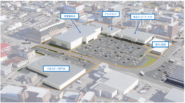 トが入居する計(jì)畫です。食品スーパーマーケットやドラッグストア、家電量販店、大型スポーツ専門店の4店舗を