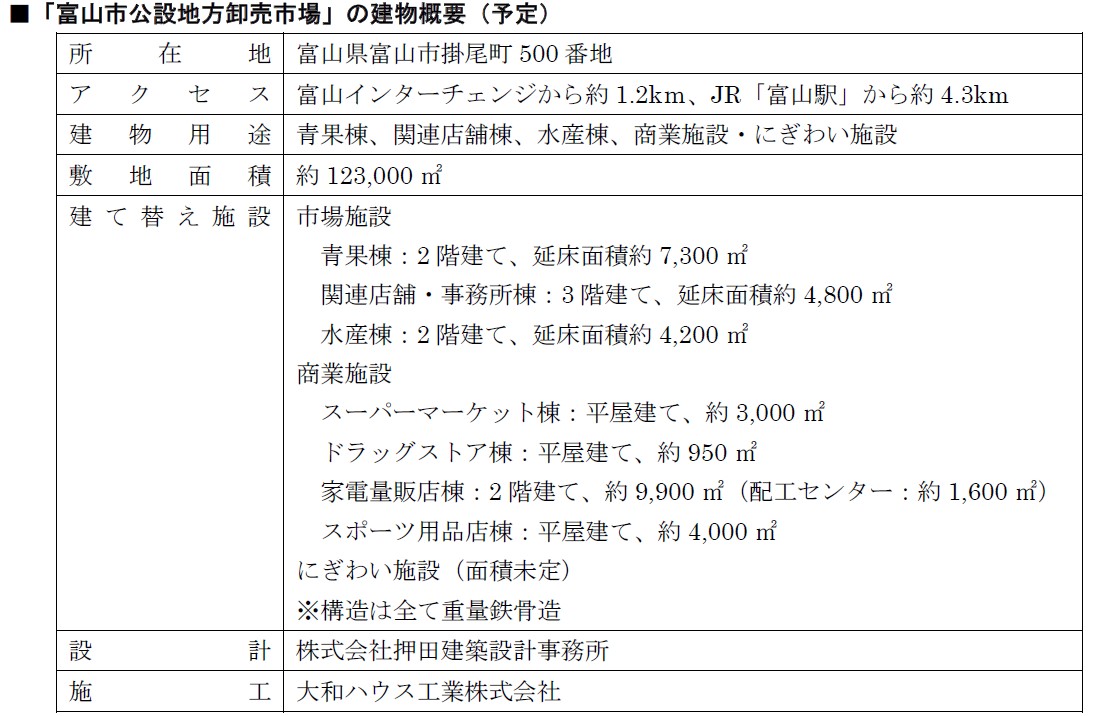 ものです。當(dāng)社を代表企業(yè)とした、地元の建設(shè)會(huì)社や市場(chǎng)の事業(yè)者などで構(gòu)成される「新とやまいちば創(chuàng)生プロ