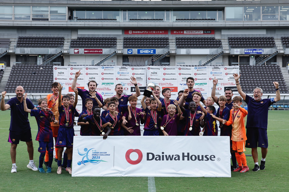 大和ハウスグループが2013年からサポートしている「U-12ジュニアサッカーワールドチャレンジ」が、今年も開催されました。40チームが8グループに分かれて予選リーグを戦い、準々決勝を勝ち上がった4チームがフクダ電子アリーナ(千葉市)に集結(jié)し、8月22日(金)には準決勝と決勝が開催されました。決勝戦では、FCバルセロナとmalva fcが対戦し、FCバルセロナが2年ぶり7度目の優(yōu)勝を飾りました。選手?保護者?チーム関係者の皆さま、暑い中4日間の大會お疲れ様でした。今回の貴重な経験を活かし、今後もサッカーをがんばってください!