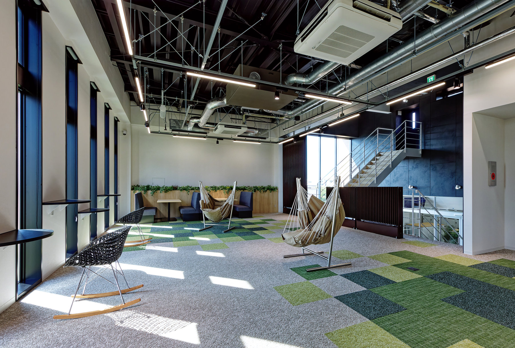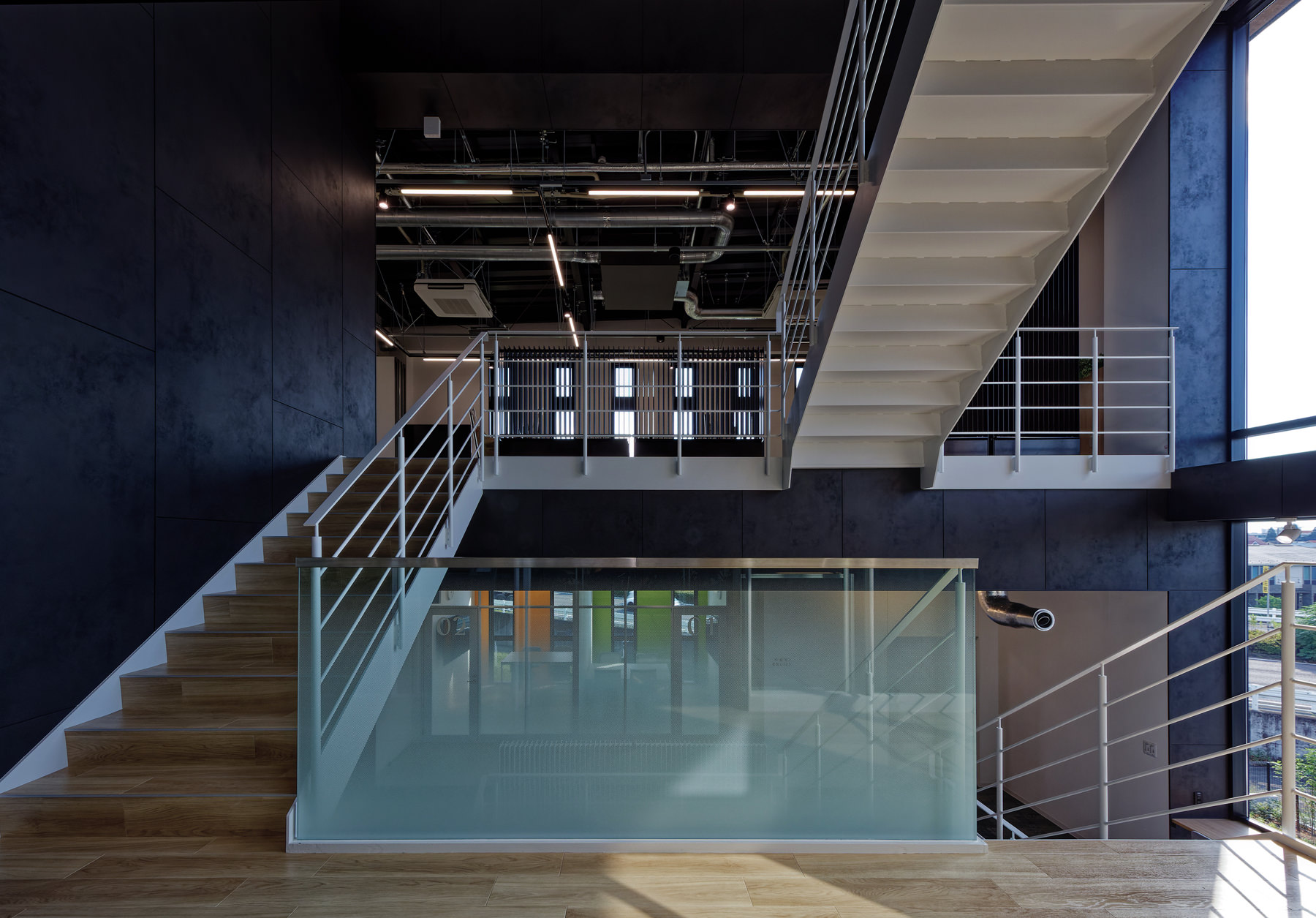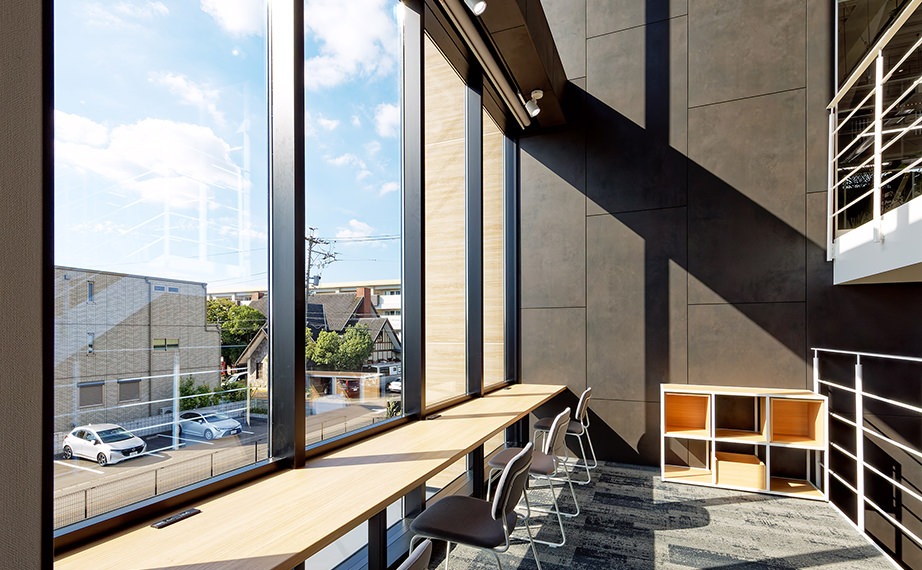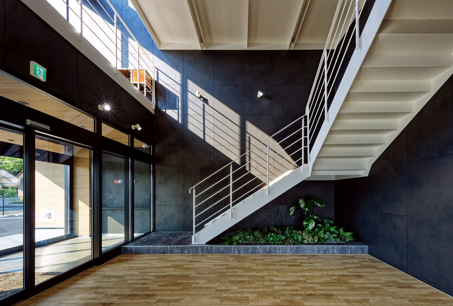 施主は空調?換気等の設計施工を行う會社であり、企業発展の起點になることを目指した建築計畫です。吹抜とスキップフロアを設けることで従業員同士の交流促進や、空気?熱の流れを利用した「ZEB」設計を実現しました。