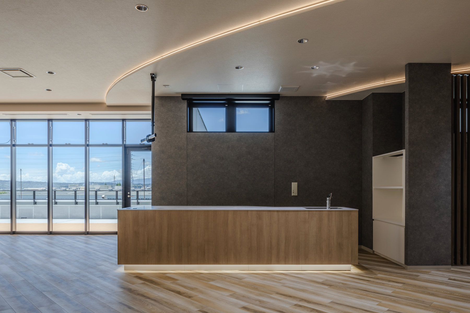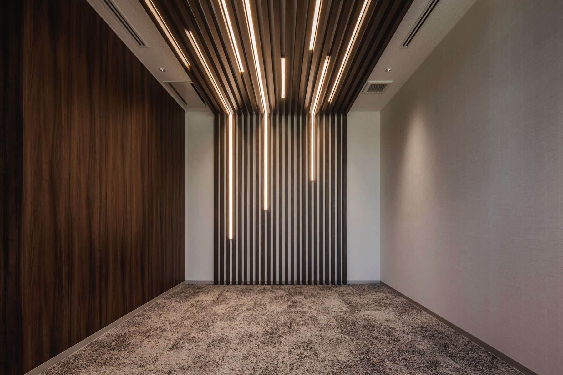 重厚感を表現するゲートをファサードに採用し、その先端には間接照明を仕込み光のゲートを表現。ゲートから建物を貫く光が新たな世界へ導くイメージを計畫に落とし込みました。建物內部へ誘う照明計畫や部屋ごとに異なる手法で演出した照明は、間接照明のショールームのような空間を実現し、施主の商品をアピールする場となりました。
