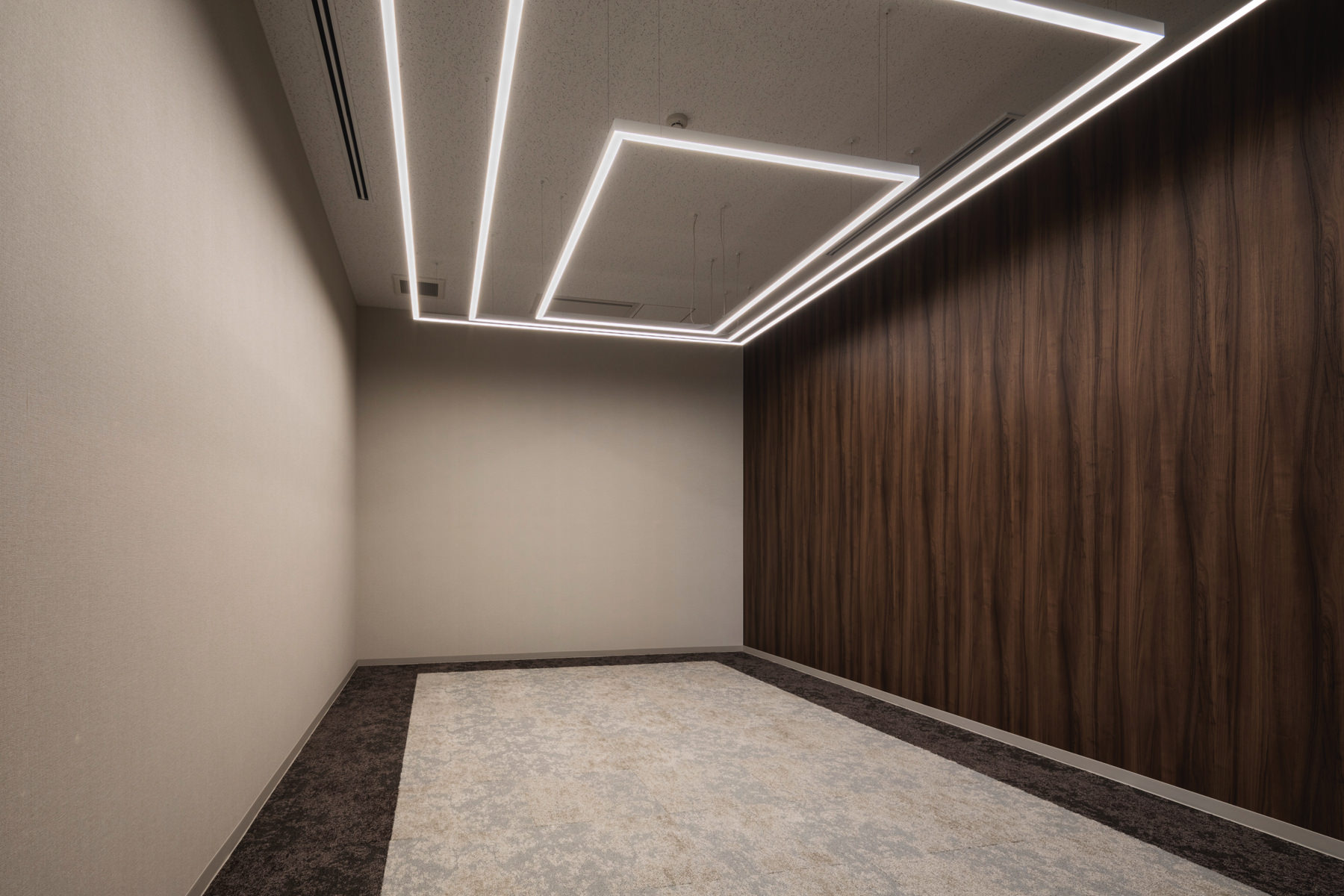 本計畫は照明メーカーの本社移転計畫です。間接照明を主力商品としており、本計畫ではその間接照明を建築の中でいかに表現するかが課題でした。本社という性格上、施主からは「重厚感」という課題も與えられました。