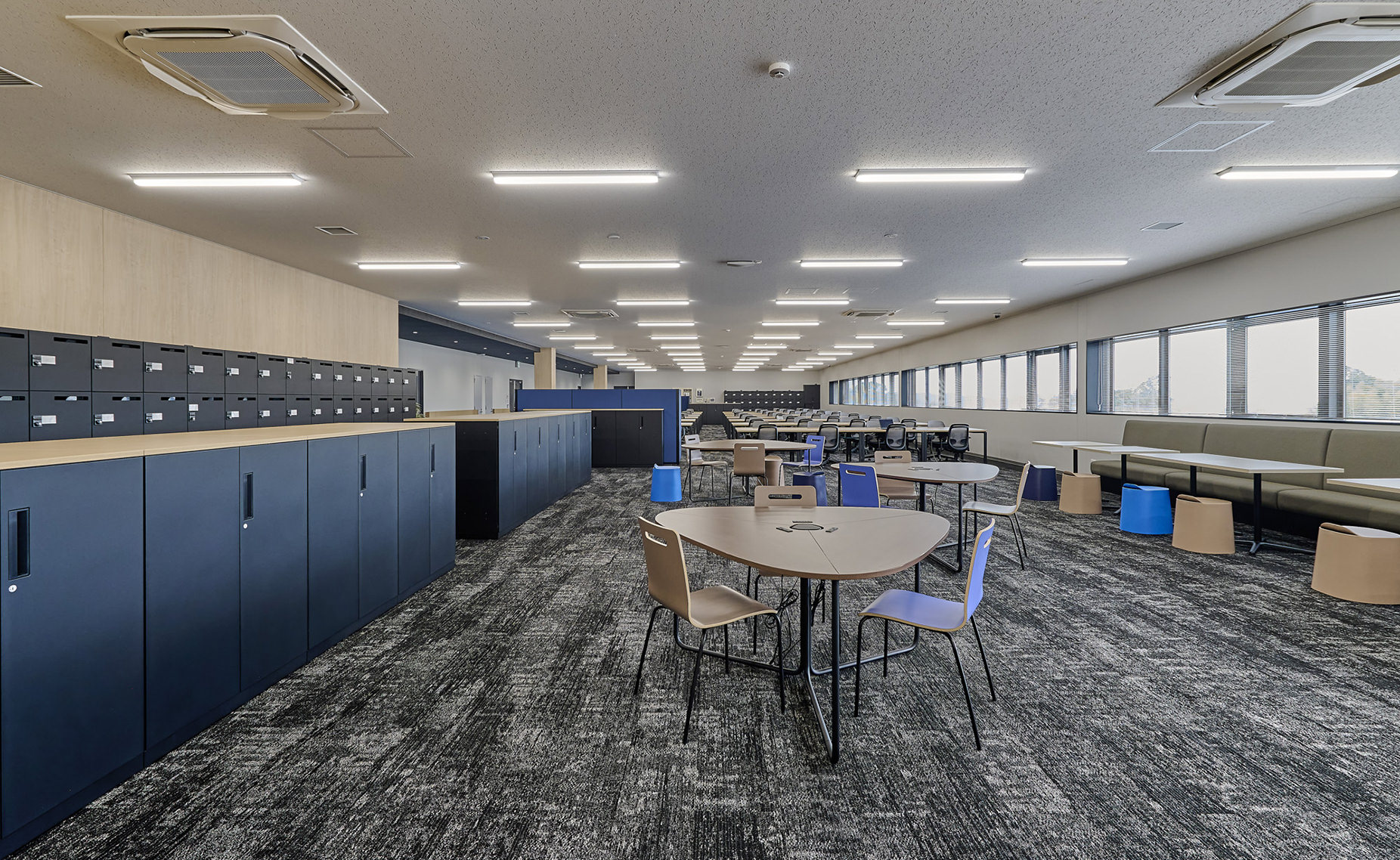 ヒト、モノの動線の効率化を目指した內部空間と、前面建屋を際立たせる外観デザインとしています。