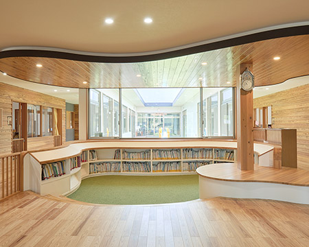 伸びやかな広がりと木の溫もりに包まれ、子どもたちは心地よく過ごすことができます。