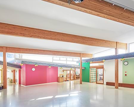 子どもたちにとって木の香りや風合いが癒しとなります。
