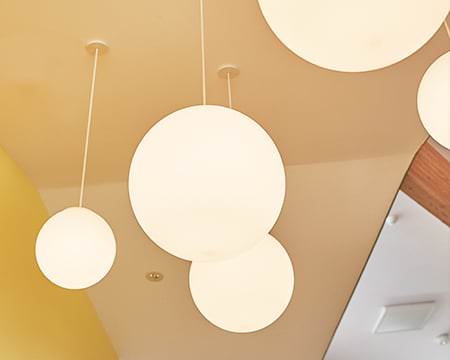 內裝材や機、ロッカーにも木材を効果的に取り入れることで、