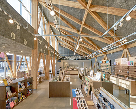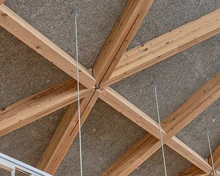 柱や梁は、山形県の伝統(tǒng)工蕓である「組木」がモチーフに。