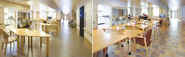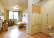 各居室のトイレは、壁を設(shè)けず、目隠しのカーテンにすることで「室內(nèi)の開放感」と「介護のしやすさ」を両立している。また入口の扉は1.3メートルの幅をとるほか、ゆとりのスペースを確保し、來客の際も寢泊まりが可能な、「ゆとり」を重視したプランニングとなっている。