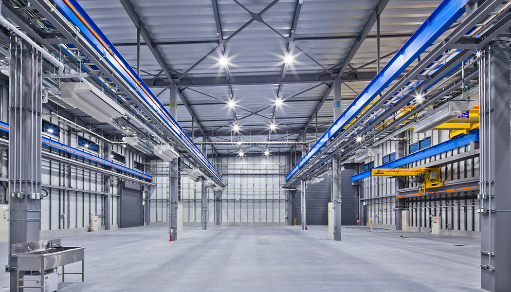 外皮の斷熱性能を高めるため、屋根には二重折板屋根、外壁には金屬系サンドイッチパネル、窓にはLow-E複層ガラスを採用。また、全熱交換器を使用して換気による室溫への影響も低減し、空調エネルギーを削減します。
