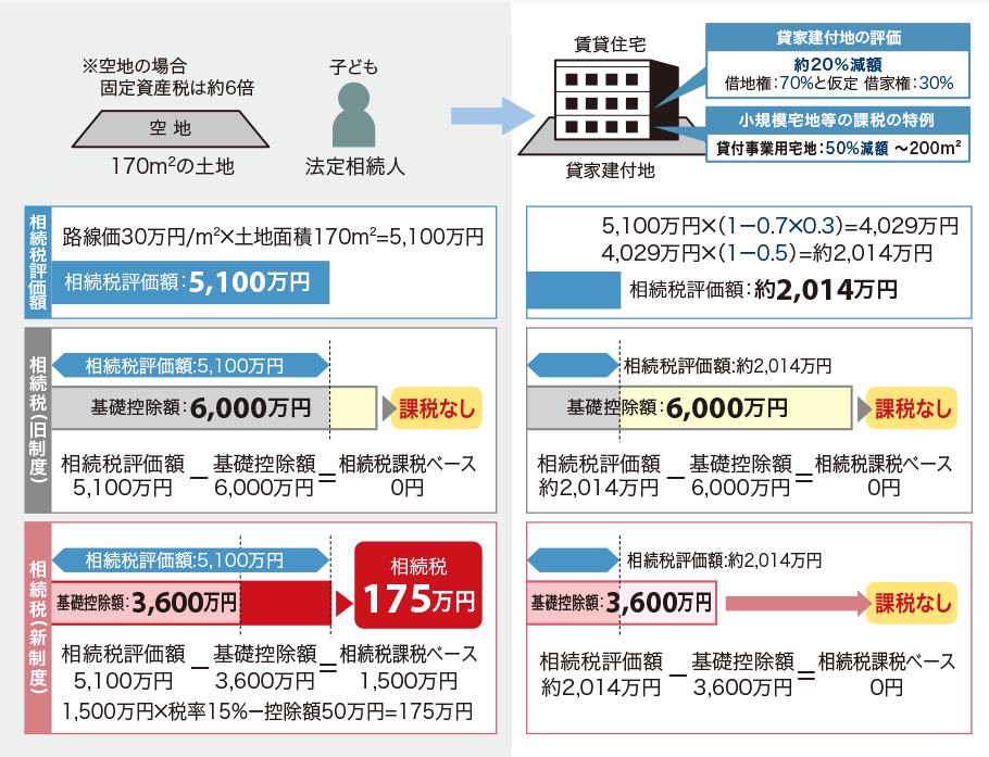 ![[CASE3]住む予定のない土地を保有している 賃貸住宅の新築(建て替え)](images/tax03_img04.gif)