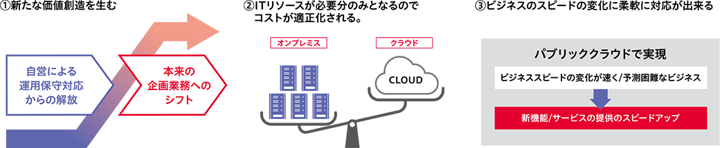 クラウドを活用することにより、下記3つの価値を得ることができます。