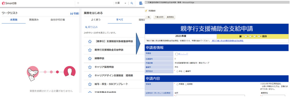 同じく2021年度からは、各種申請書類のペーパーレス化を進めてきました。人事関連申請書類の起案から決裁までWebサイト上で完結できるシステムを導入し、全申請書のペーパーレス化を目指しています。(図3)