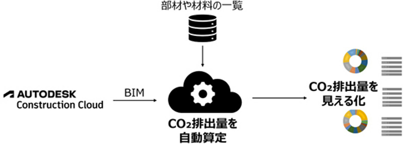 設(shè)計者が、BIMモデルをもとに部材の數(shù)量や材料情報を取り込み、BIMモデルで再現(xiàn)しない部材も含めたCO?排出量を自動算定できるようにすることで、効率的かつ低炭素な設(shè)計を可能としました。
