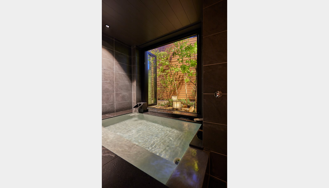 半露天風(fēng)呂:3人はゆったりと入れる半露天風(fēng)呂。かけ流しの吐口から流れる水の音が一日の疲れを癒してくれます。