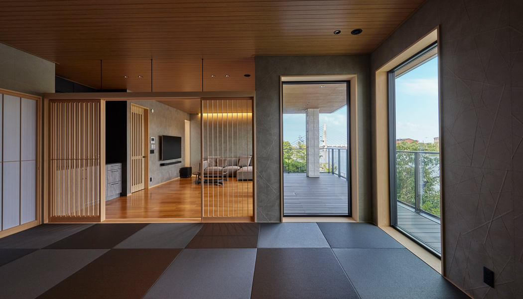 2階ゲストルーム:水平につながるテラスより海が眼前に広がる、大人數(shù)でも宿泊できる琉球畳敷きのお部屋です。
