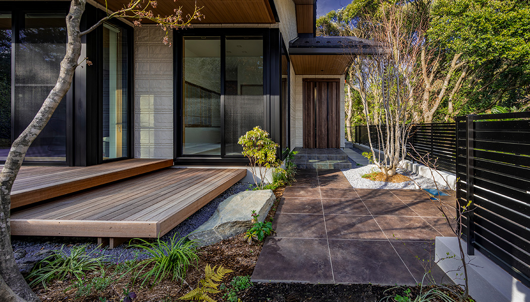 外観:庭と建物が一體化し、自然に寄り添うおおらかな佇まいに。