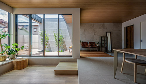 LDK:玄関をくぐると広がる、伸びやかな內外一體の空間。