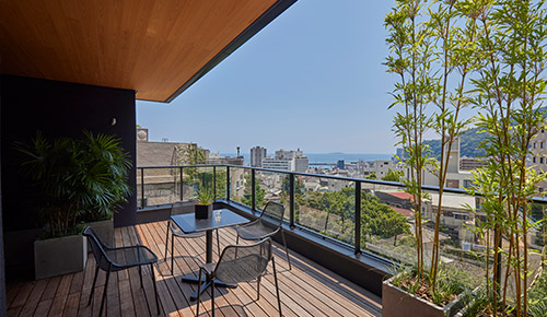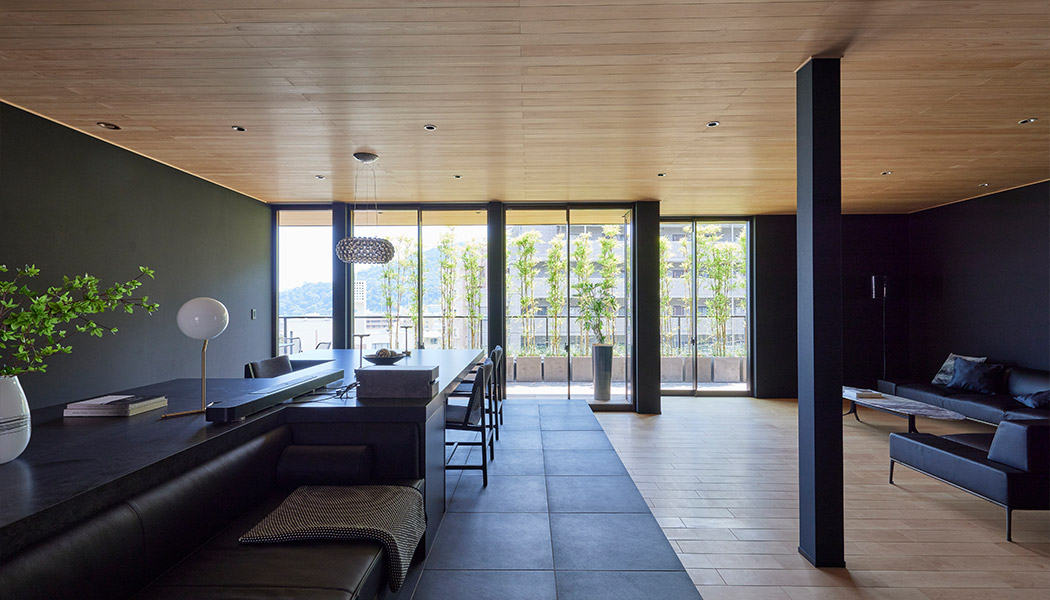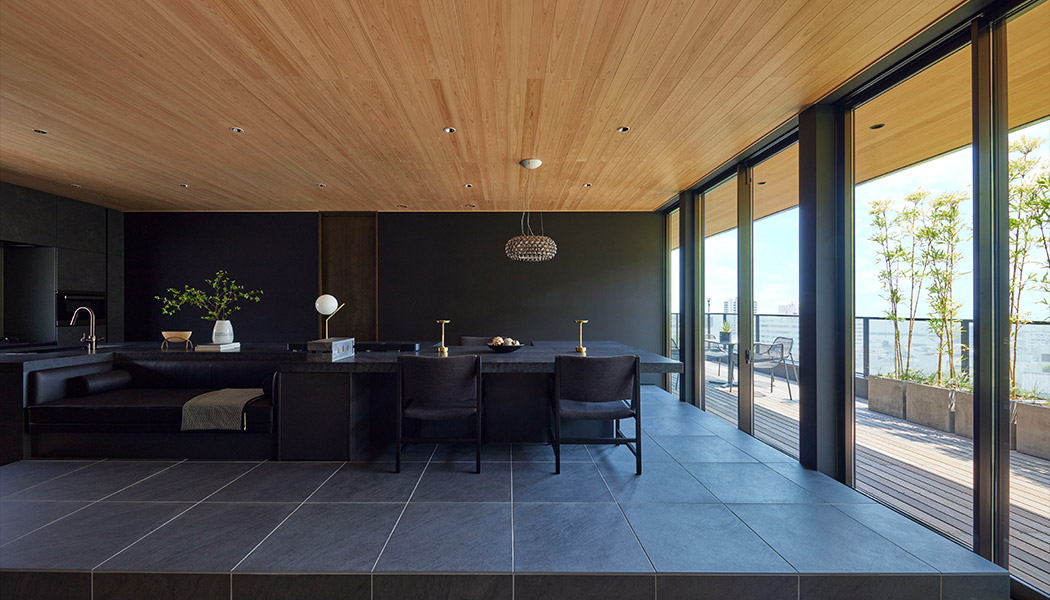 DK:海が臨めるバルコニーに面したDK。舞臺のように一段上げることにより、食の空間を際立たせた。