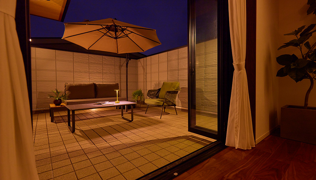 アウトドアルーム:カーテンを開け放てる屋外は、暮らしの幅を広げる都市のリゾート。