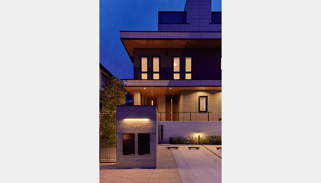 住み慣れた土地の記憶を殘しつつ、新たな暮らしを描いた二世帯住宅。世帯ごとの好みを反映しながら全體として調(diào)和し、ご家族の器=フレームとなる住まいを目指した。浮遊感のある個性的な外観を特徴としている。