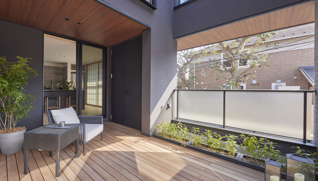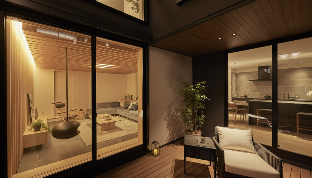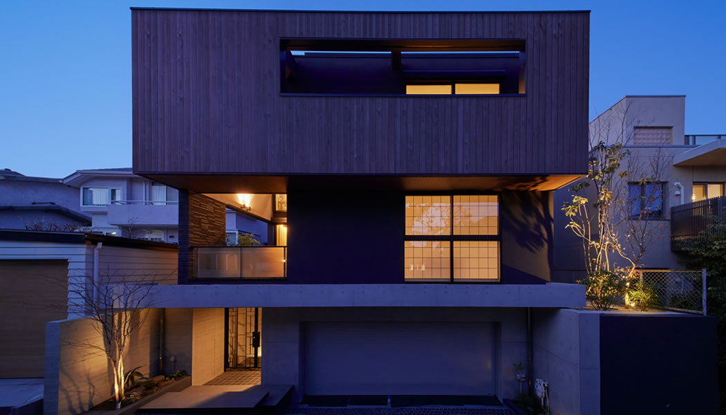 道路と宅盤の高低差最大3m超を生かし地階にガレージ、玄関を配置。地上部にライトコート、アウトヴォイドを配置し通風(fēng)、採光を各居住空間に確保。また、外部からの視線に配慮したプランニングになっている。外裝には天竜杉、內(nèi)裝床には、尾鷲檜などの國産材をふんだんに用いSDGsも意識(shí)している。昨今の経済狀況からもインバウンドも意識(shí)しているのと同時(shí)に、日本人にも五感を刺激する豊かな空間を提供している。