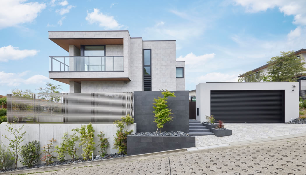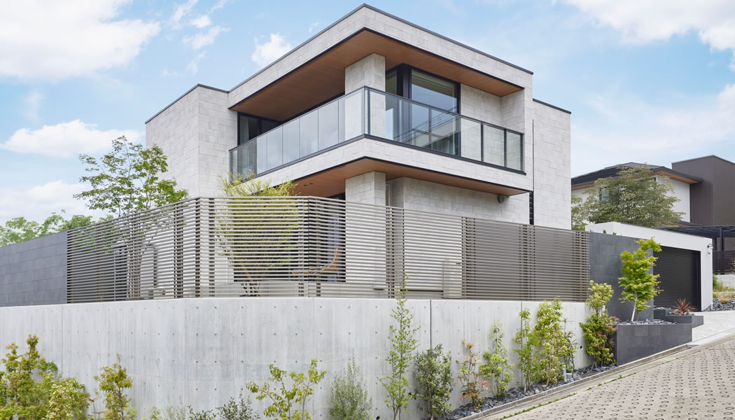 十字路に接した角地に凜と構える存在感のある邸宅。伸びやかに、誇らしく。行き交う人々を魅了する。