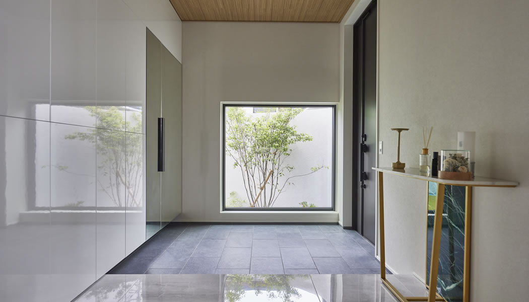 エントランス:整然とした上品なエントランス。自然のゆらぎをもたらす窓がアクセントに。