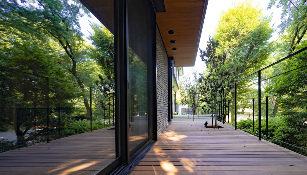 テラス:1F主寢室からの公園側にあるテラス。緑が映える。
