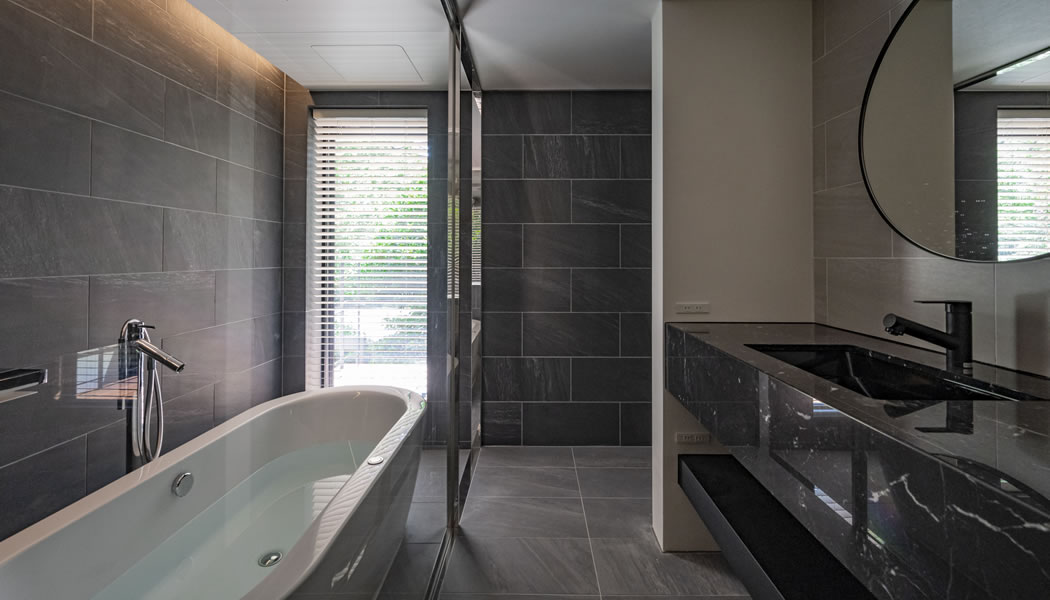 バスルーム:1F主寢室に隣接する統一感のあるバスルーム。