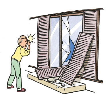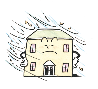 臺(tái)風(fēng)の怖さは、強(qiáng)風(fēng)により直接建物が被害を受けるよりも、よそから飛んでくる木片や瓦の破片などによって外壁や屋根、窓ガラスが破損することです。庭やベランダなどの屋外は、強(qiáng)風(fēng)で物が散亂しないよう片付け、植木に支柱をたてておきましょう。バルコニーの排水口はつまりがないか點(diǎn)検を。また、雨戸を閉めてしっかりと施錠、窓にはクレセント錠をかけてください。雨戸がついていない場(chǎng)合はテープや板などで補(bǔ)強(qiáng)し、ガラスが割れたり、その破片が飛び散らないように。