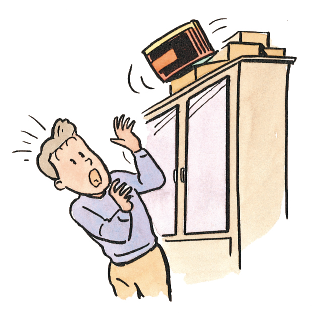 振動(dòng)による落下物は、物自體の損傷はもちろん、下にいる人へも被害を與えます。重い物を不安定においたり、家具の上に物を乗せないように心掛けてください。また、激しい揺れが起こると家具が倒れることもありますので、家具をL字金具で壁面に固定しておくといいでしょう。