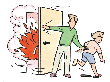 燃えている部屋の戸を閉めて避難する。(空気の流れを防ぐ)